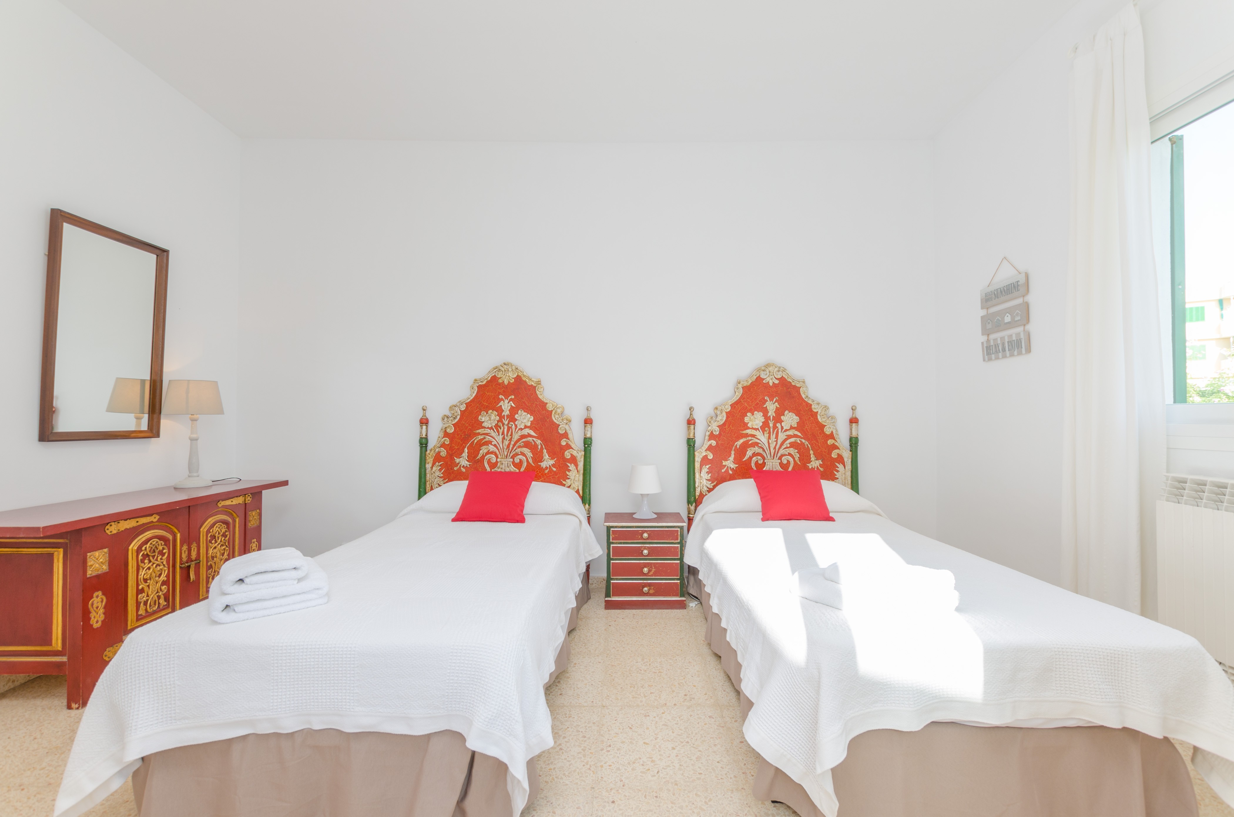 A penas un par de minutos andando les separan de la paradisíaca playa de Cala Blava, aunque si les apetece coger coche y disponerse a conocer más calas y playas impresionantes, les recomendamos Son Veri Nou, Sa Rapita o la protegida playa de Es Trenc, entre muchísimas otras. Para una visita de ocio, tiendas, cultura y vida nocturna, la capital de Palma de Mallorca, con su emblemática Catedral La Seu y su casco antiguo, está a unos 15 km o 20 minutos en coche. Muchos resturantes, cafeterías, heladerías, tiendas de todo tipo y centros comerciales, les esperan para sus compras.
