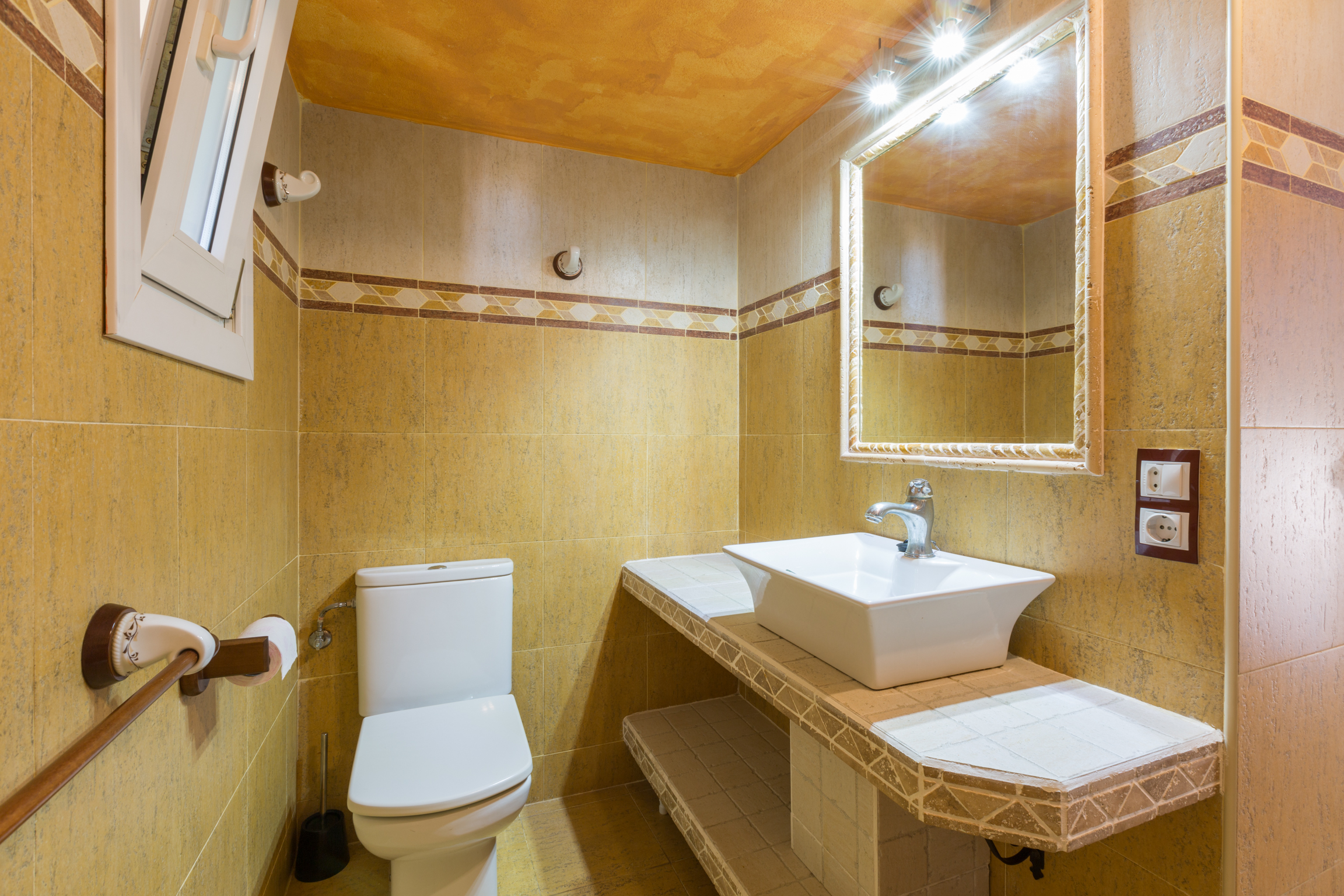 Aquí puede elegir entre cinco dormitorios cómodos; uno de ellos en la planta baja con cama doble y baño en-suite con bañera. Los dos dormitorios de la primera planta disponen de aire acondicionado y uno tiene una cama doble, el otro dos individuales. En la misma planta hay otro baño independiente con ducha. En la planta de arriba encuentran dos dormitorios más, ambos con cama doble, pero solo uno con aire acondicionado, acceso a una terraza y baño en-suite con ducha. El cuarto baño tiene una ducha y está situado en el exterior de la casa, dando servicio a la zona de piscina y terraza.