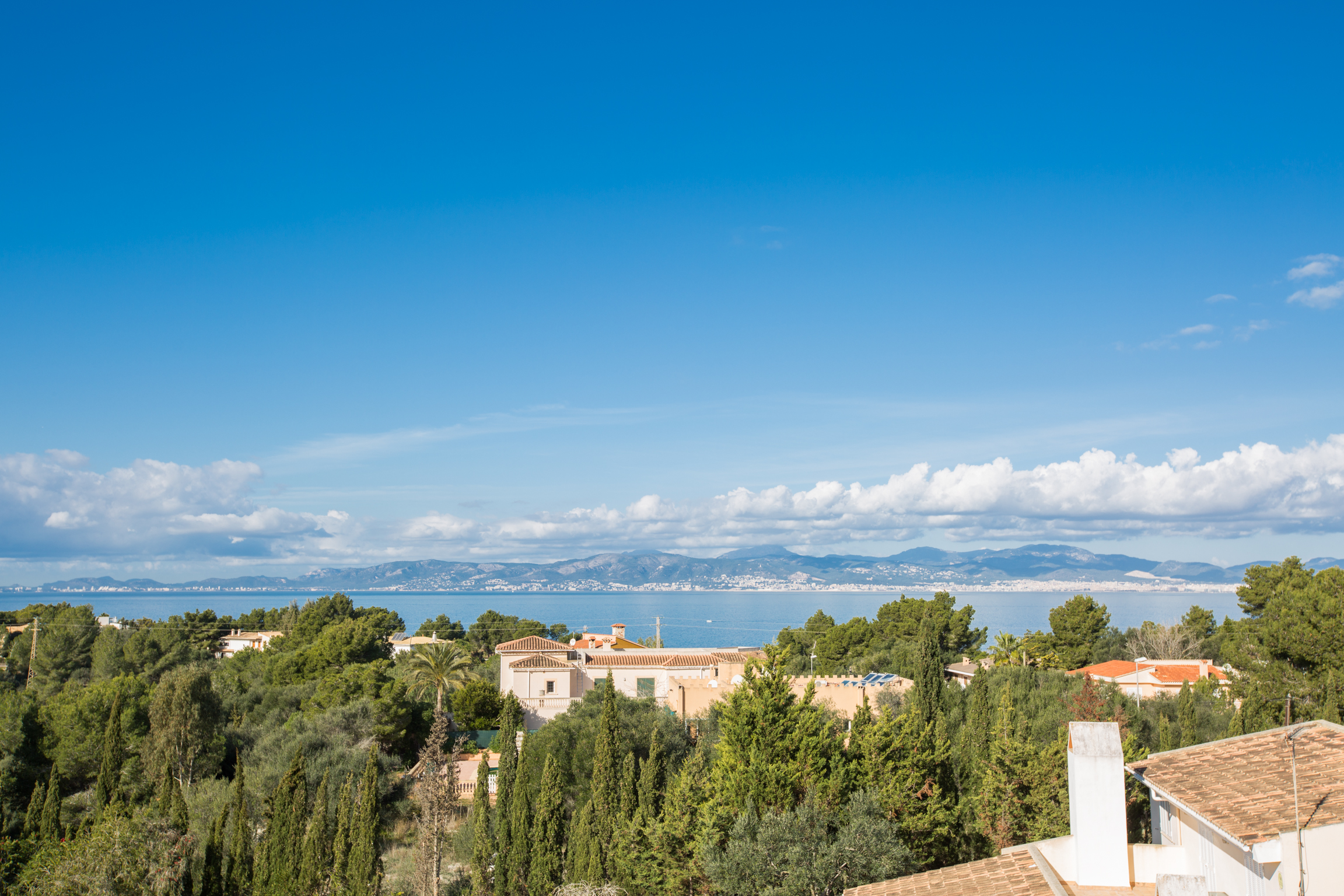 La urbanización de Bellavista se halla en el sur de Mallorca, a pocos kilómetros de Palma de Mallorca y de la playa. La pequeña Cala Blava está a solo 450 metros y tiene vistas espectaculares a la Bahía de Palma. S'Arenal o Can Pastilla, ambos animadas playas de arena con ocio, restaurantes y bares, están a pocos minutos conduciendo. Palma de Mallorca, la capital isleña, es famosa por la Catedral La Seu, el Castillo de Bellver y el pintoresco casco antiguo. En S'Arenal hay supermercados, tiendas y todo los servicios para una estancia independiente.