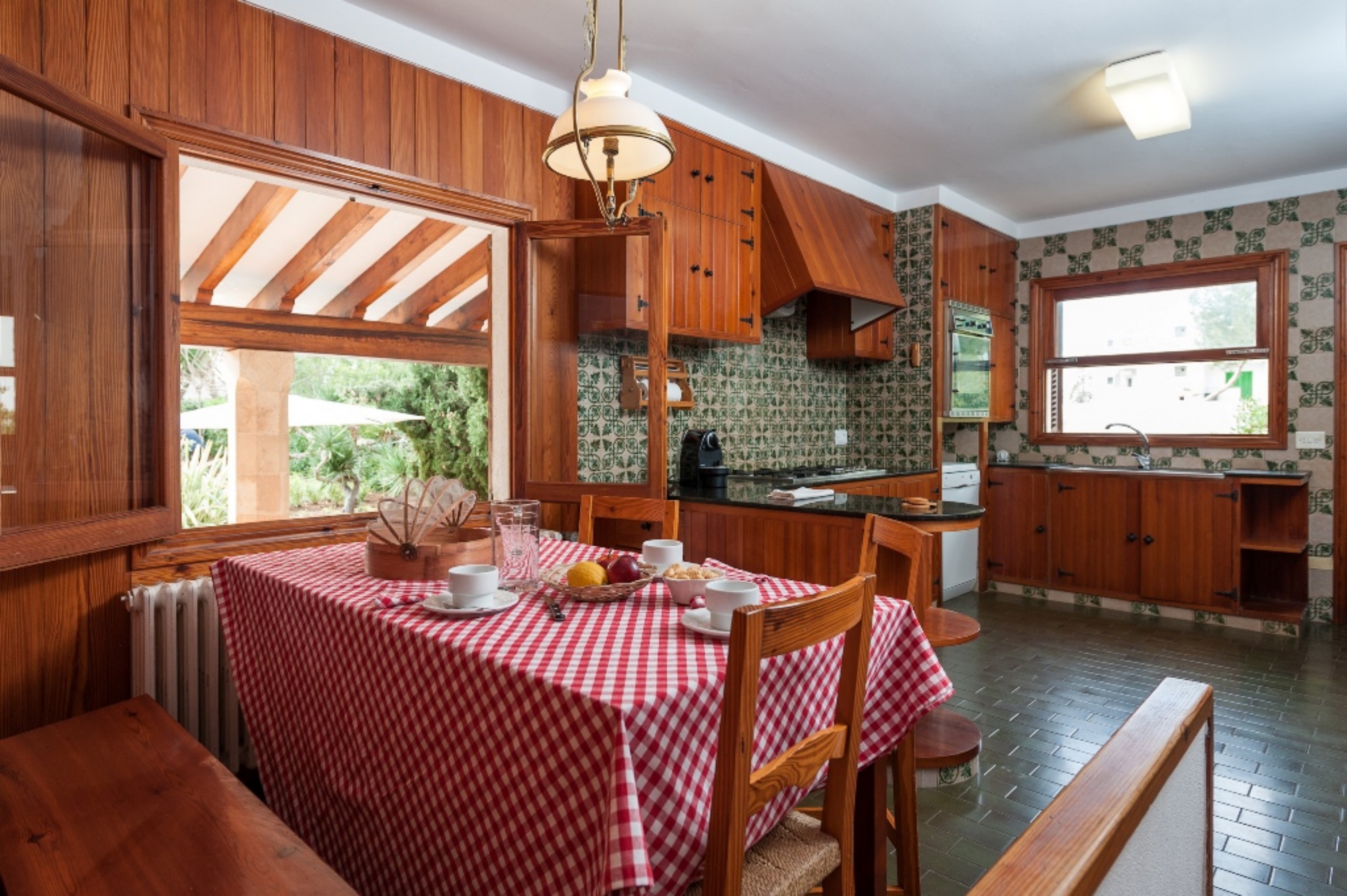 Esta maravillosa villa se encuentra en una urbanización de la zona costera de Cala Blava, a escasos metros del mar. Cuenta con vistas al mar, a la Bahía de Palma y en ella se pueden alojar 9 personas más 1 plaza extra con coste adicional.