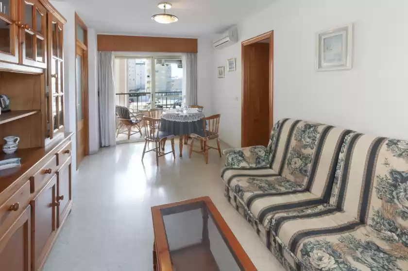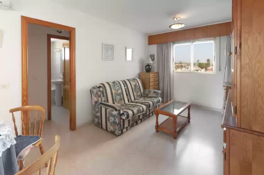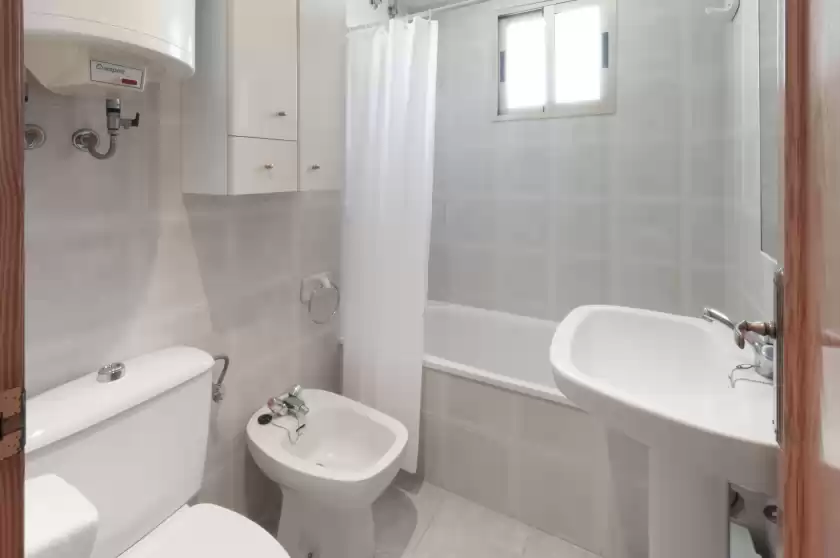 Das Innere der Wohnung ist so gestaltet, dass Sie die verdiente Ruhe finden. Das Wohn-Esszimmer, ausgestattet mit AC, ist perfekt, um die Abende zu verlängern. Die Küche ist unabhängig und verfügt über einen Gasherd und alles, was Sie brauchen, um in totalem Komfort zu kochen. Im Haus gibt es eine Waschmaschine, ein Bügeleisen und ein Bügelbrett. Wenn es Zeit zum Schlafen ist, gibt es 2 Schlafzimmer, eines mit einem Doppelbett und das andere mit 2 Einzelbetten. Beide können über die Klimaanlage im Flur gekühlt werden. Das Haus verfügt über ein Badezimmer mit Badewanne. Wenn Sie mit Ihrem Baby reisen, können wir ein Kinderbett und einen Hochstuhl zur Verfügung stellen.