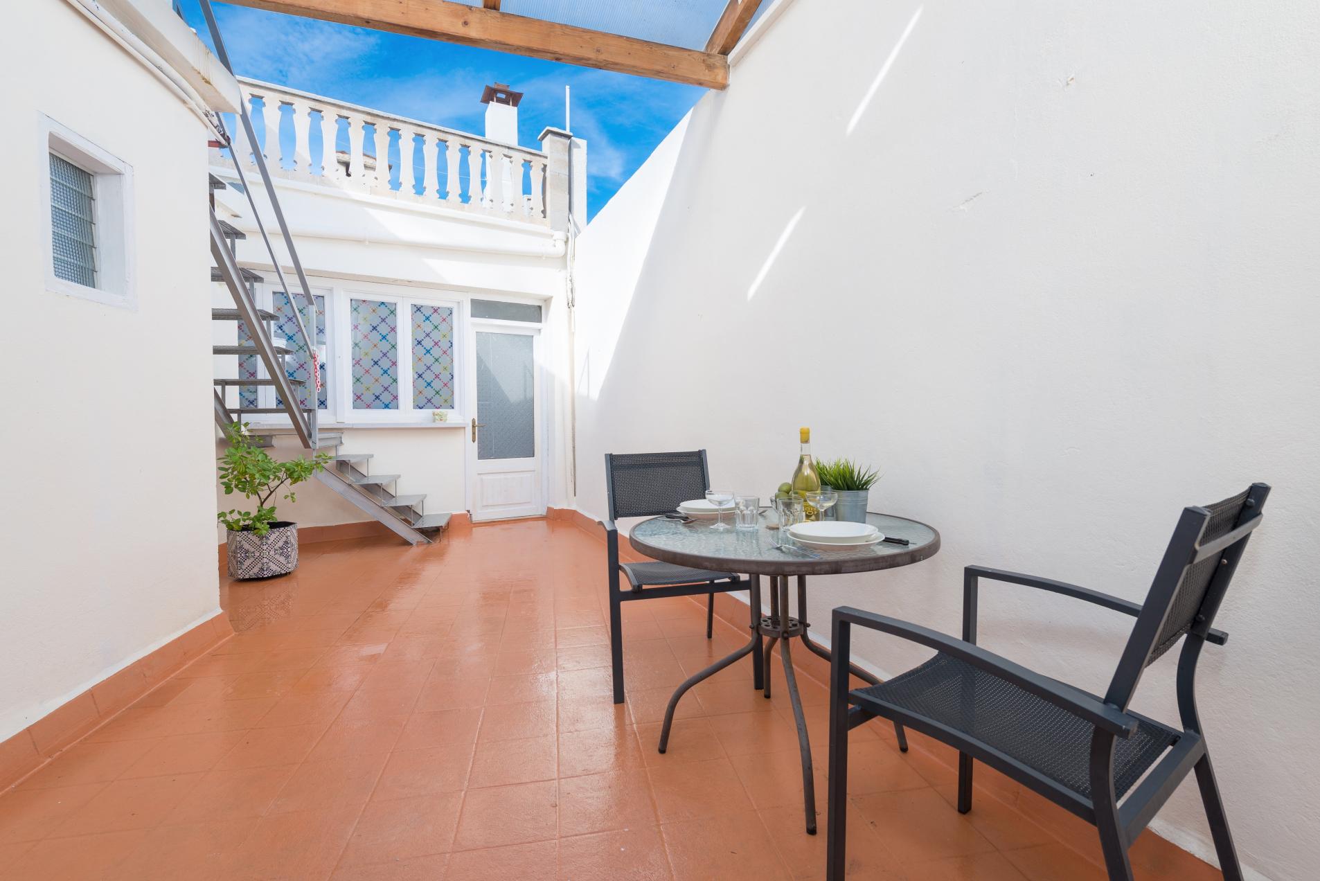 La terraza interior de esta bonita casa de pueblo es el rincón privado ideal para tomar un desayuno por la mañana, antes de acercarse a la playa, o bien una deliciosa comida o cena a la vuelta, al fresco o bajo el cielo estrellado. Subiendo unas escaleras desde aquí, acceden a la terraza/solárium superior, donde pueden contemplar las vistas al pueblo y a las montañas. Y también tienen dos tumbonas por si desean disfrutar del sol.