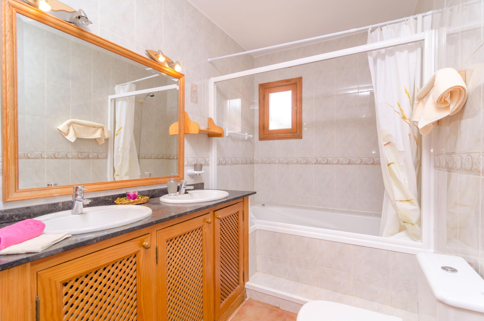 Arriba, puede encontrar dos dormitorios con dos camas individuales cada uno y uno con cama doble. Un baño con bañera da servicio a esta planta. Si viajan con un bebé, podemos facilitar hasta dos cunas y dos tronas. Además, bajo petición y según disponibilidad, existe la posibilidad de poner dos camas extras (0.8m x 1.9m) para niños hasta 12 años. La casa pone a su disposición cinco ventiladores y dos radiadores.
