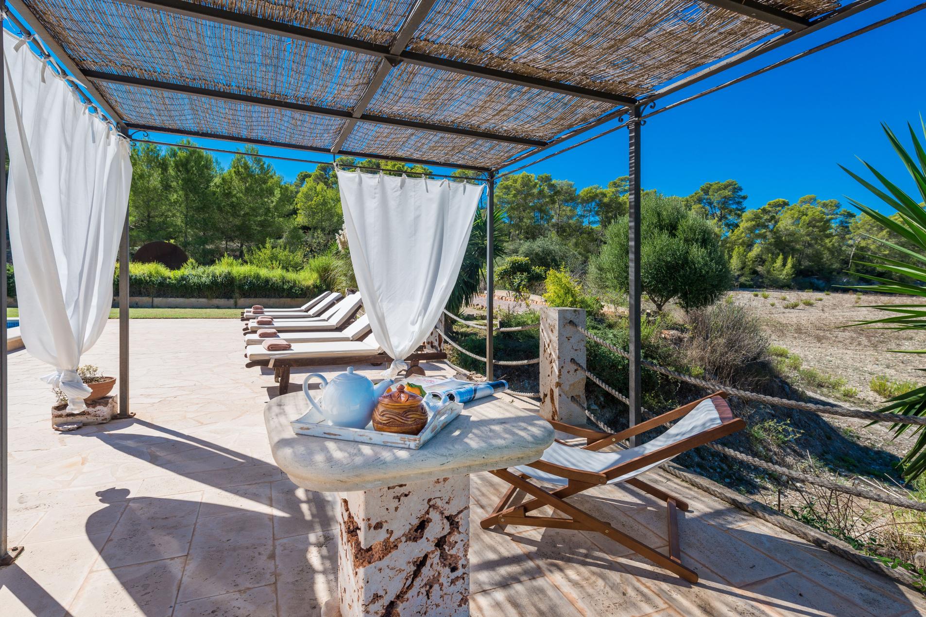 La piscina de sal, de 9m x 5m y una profundidad de entre 1.2m y 1.7m es la protagonista de esta casa de ensueño. Rodeada por una terraza con nueve hamacas y una ducha exterior, es un lugar idóneo para disfrutar del sol Mediterráneo. Varias terrazas invitan a hacer una barbacoa al aire libre y comer con toda la familia. Los niños disfrutan jugando en el jardín, mientras los adultos hacen una partida de petanca. Esta casa espectacular está totalmente privada y no tiene vecinos directos.