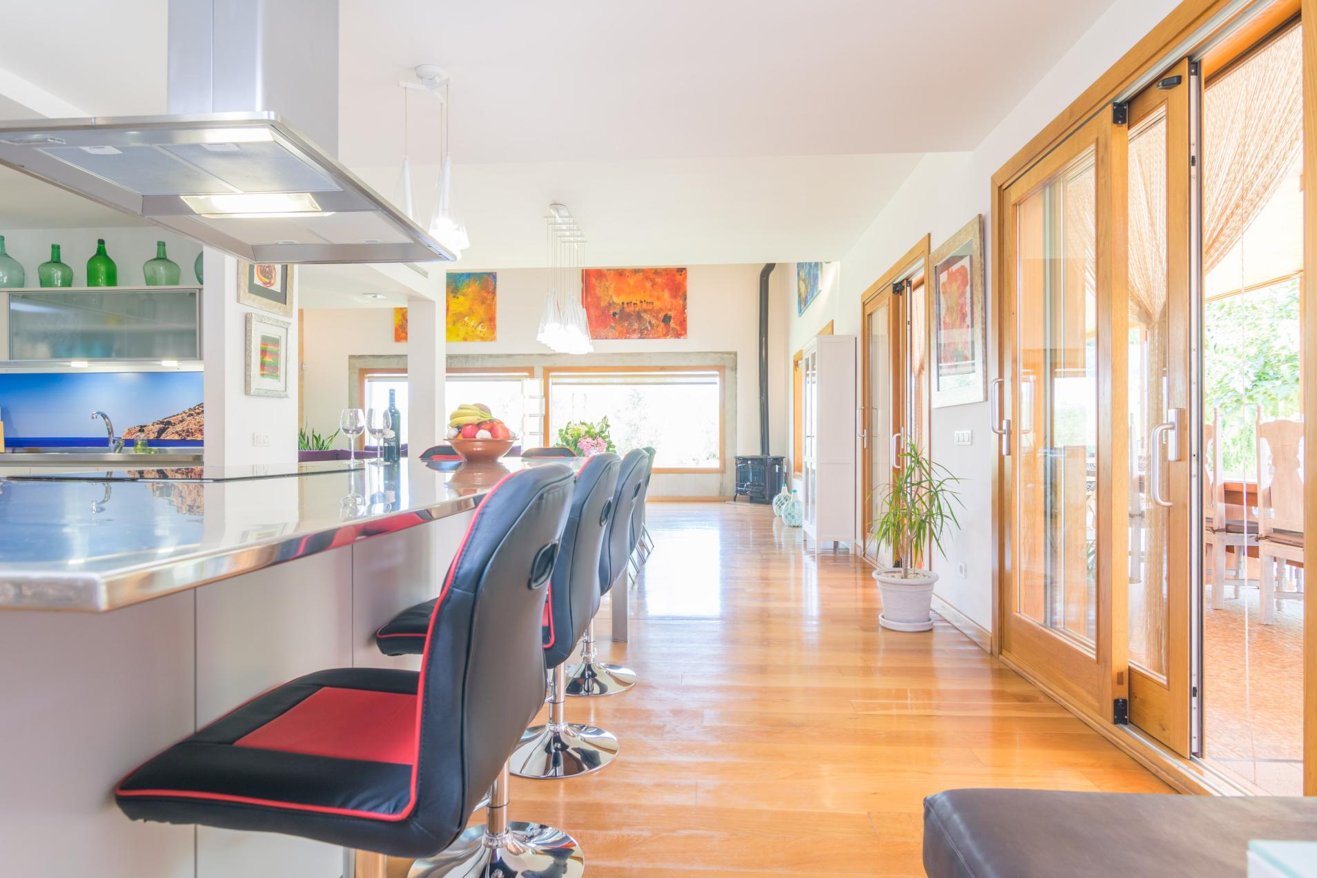 This villa is absolutely beautiful, the photos don’t do it justice. Unfortunately we had a huge problem with ants ( which we would expect at this time of year) they were literally crawling over us in our beds and it makes sitting outside to eat unpleasant as they are everywhere and over the sun beds. Ant spray is left for you but we actually went through 5 large cans in one week. We spent so much of our holiday spraying ants and going out to purchase more spray. The fumes from the sprays are so strong and not suitable for rooms with children in them. The villa is spacious and the grounds are beautiful. Our only complaint would be the beds. Single beds pushed together in every room with flat sheets. You found yourself lying on the bare mattress in the morning. Also be aware there is no welcome pack so you are left to work out everything in the villa. It would be nice to have a bit if information about the area, the villa itself, local amenities etc. We were unfortunate enough to need both a doctor and ambulance whilst there and local emergency numbers would of been very useful. If we didn’t have mobile phones we would have been very stuck. Santa Margalida is a pretty quiet town. There are two small restaurant/ cafés in the square. Jimmy’s is by far the nicer one! Muro beachside restaurants were very good offering a variety of dishes at reasonable prices. In summary it is a beautiful villa and lovely area. What would of made our stay much more enjoyable would have been some information when we arrived. Also, as previously mentioned we understand ants are a part of the climate and area but there must be a way to fumigate in between stays. Ants in the beds, washing machine, dishwasher etc as well as over every table, sun-bed and hammock every day does take the shine of such a beautiful place. I don’t want to sound like we’re moaning but this wasn’t a cheap villa and to be told to go to the shops and buy spray when you’ve got ants crawling over you at night isn’t the response I would have expected. Again, it’s a moan but only because it’s something that can be rectified and does spoil your stay.