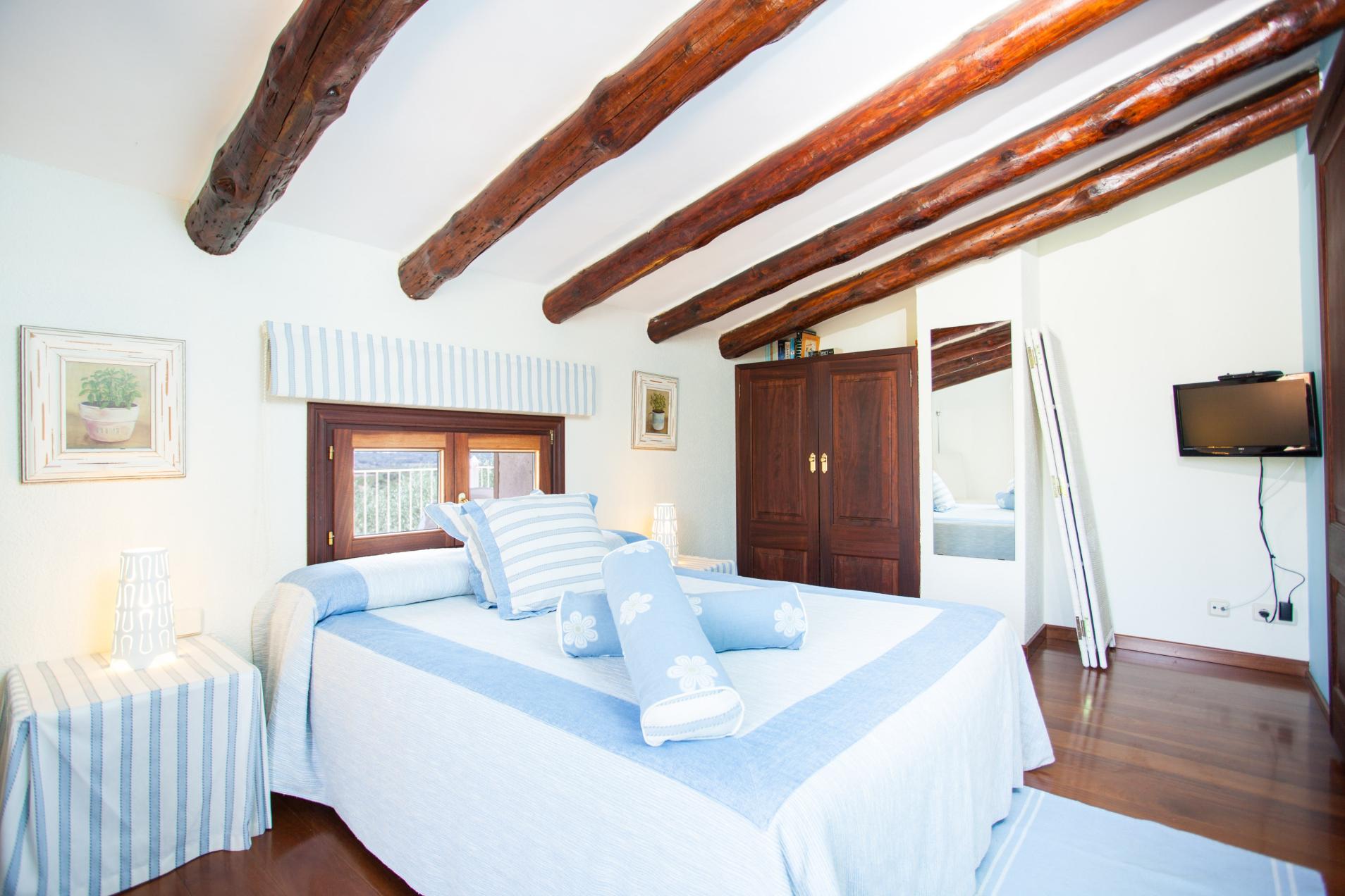 Esta bonita casa, de estilo mallorquín, ofrece dos plantas, con estancias amplias y luminosas, y con todas las comodidades para disfrutar por completo de tus vacaciones. En la planta baja encontrarás un fantástico comedor para 6 comensales con increíbles detalles como la cisterna interior. Comparte espacio con el salón que se abre al porche exterior. Aquí podrás descansar en el cómodo sofá mientras ves la televisión por satélite o disfrutas del calor de la chimenea en las noches más frías. Junto a la zona de comedor tienes el acceso a la cocina. Es de gas y se encuentra bien equipada para cocinar durante tu estancia. Incluye lavavajillas, horno eléctrico y una mesa con sillas para los desayunos de por la mañana. La casa cuenta a su vez con una zona de lavandería independiente con lavadora, plancha y tabla de planchar. Para descansar la casa cuenta con tres dormitorios. Los dos primeros están en la planta baja, uno con cama de matrimonio y el otro con dos camas individuales, y ambos con armario. Un baño con ducha da servicio a esta planta. En la primera planta encontrarás el último dormitorio con cama de matrimonio, aire acondicionado, y baño en suite con ducha también. Si viajas con un bebé, podemos proporcionarte una cuna y una trona.