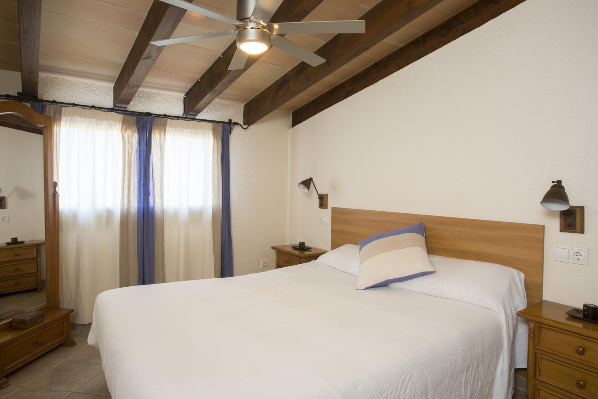 La casa es una unión de dos viviendas que se comunican por la terraza. Tiene un total 350 m2 distribuidos en dos plantas. Una vivienda dispone de cuatro dormitorios, dos de ellos situados en la PB, uno con cama de matrimonio y uno con dos camas individuales, y dos en la 1ª planta, uno con cama de matrimonio y baño en suite con bañera, y uno con una litera doble. Además hay un baño con bañera que da servicio a toda la casa, un salón equipado con dos sofás, una mesita, TV-Sat, estufa de leña, y un comedor equipado con una mesa grande y sillas. Dispone de una cocina, independiente y de gas, con todo lo necesario para que pueda cocinar sin ningún problema. La segunda vivienda dispone de un salón comedor, -equipado con dos sofás, TV-Sat, chimenea y una mesa con sillas-, una cocina independiente y de gas, un dormitorio con cama doble en la primera planta, y un baño con ducha. Hay calefacción central gasoil por toda la casa, una lavadora, plancha y tabla de planchar, además de disponibilidad para una cuna y una trona.