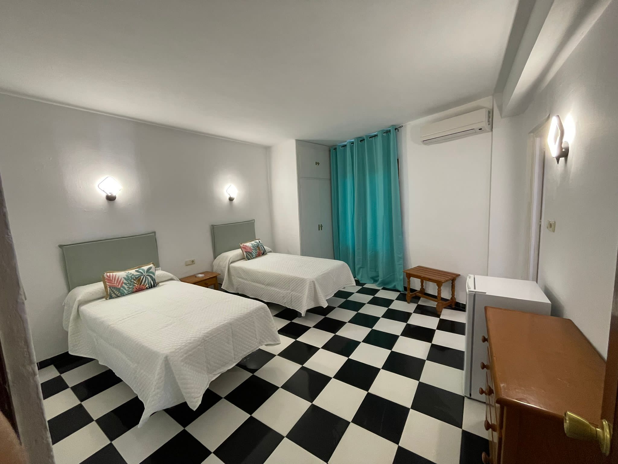 All rooms have a private bathroom with shower, hairdryer and courtesy amenities, tiled floor, wardrobe, air conditioning and heating. Flat screen TV, minibar and Wifi Free. Some rooms include a small balcony. Access to the rooms is by stairs to the first, second and third floors.