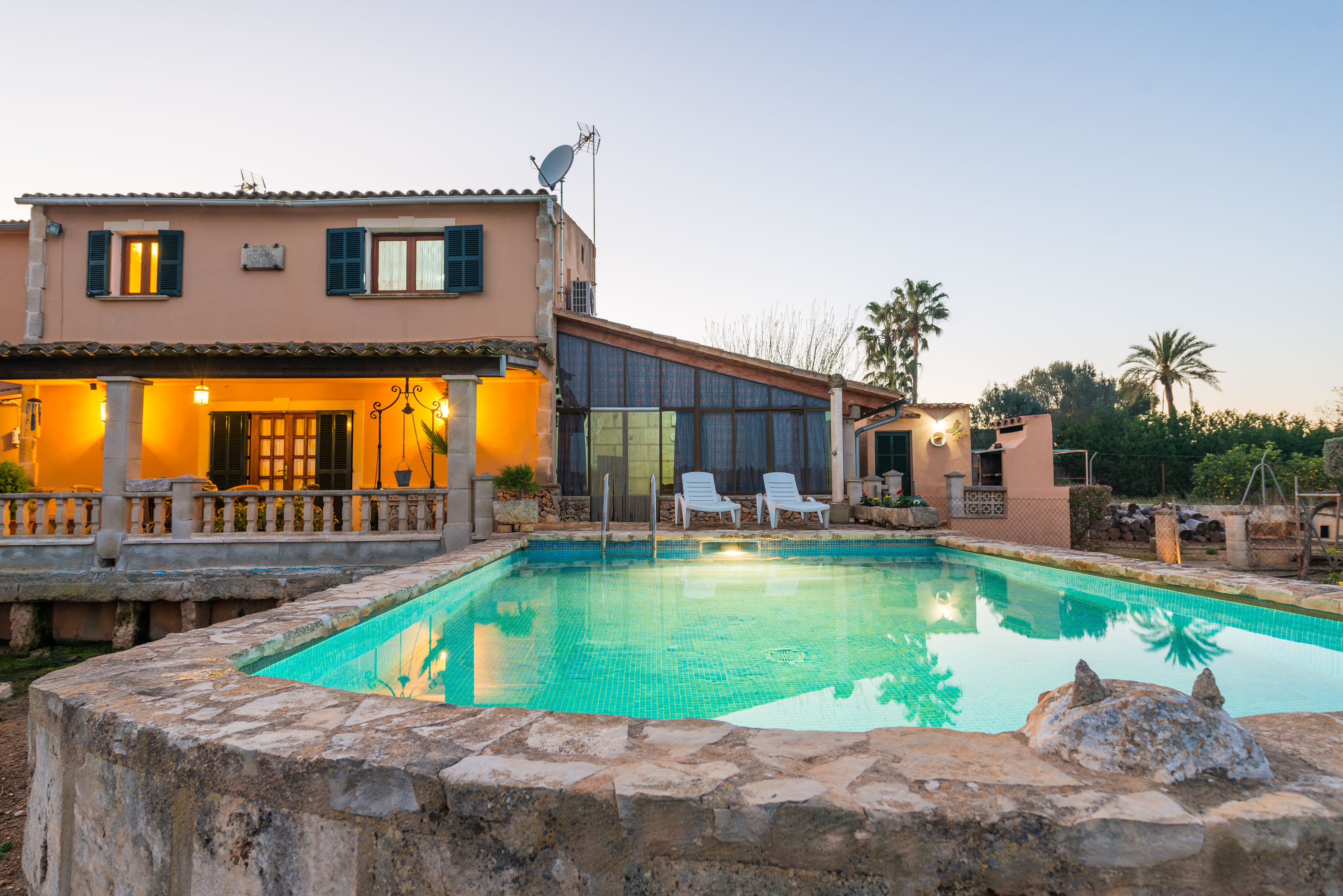 It features a garden, a chlorine pool of 7 x 4.5 m, with a depth of 1.5 m made from an antique pond and surrounded by an orange grove, a large, well equipped terrace, a fully equipped porch, a barbecue and fruit trees. There is another terrace on the 1st floor.