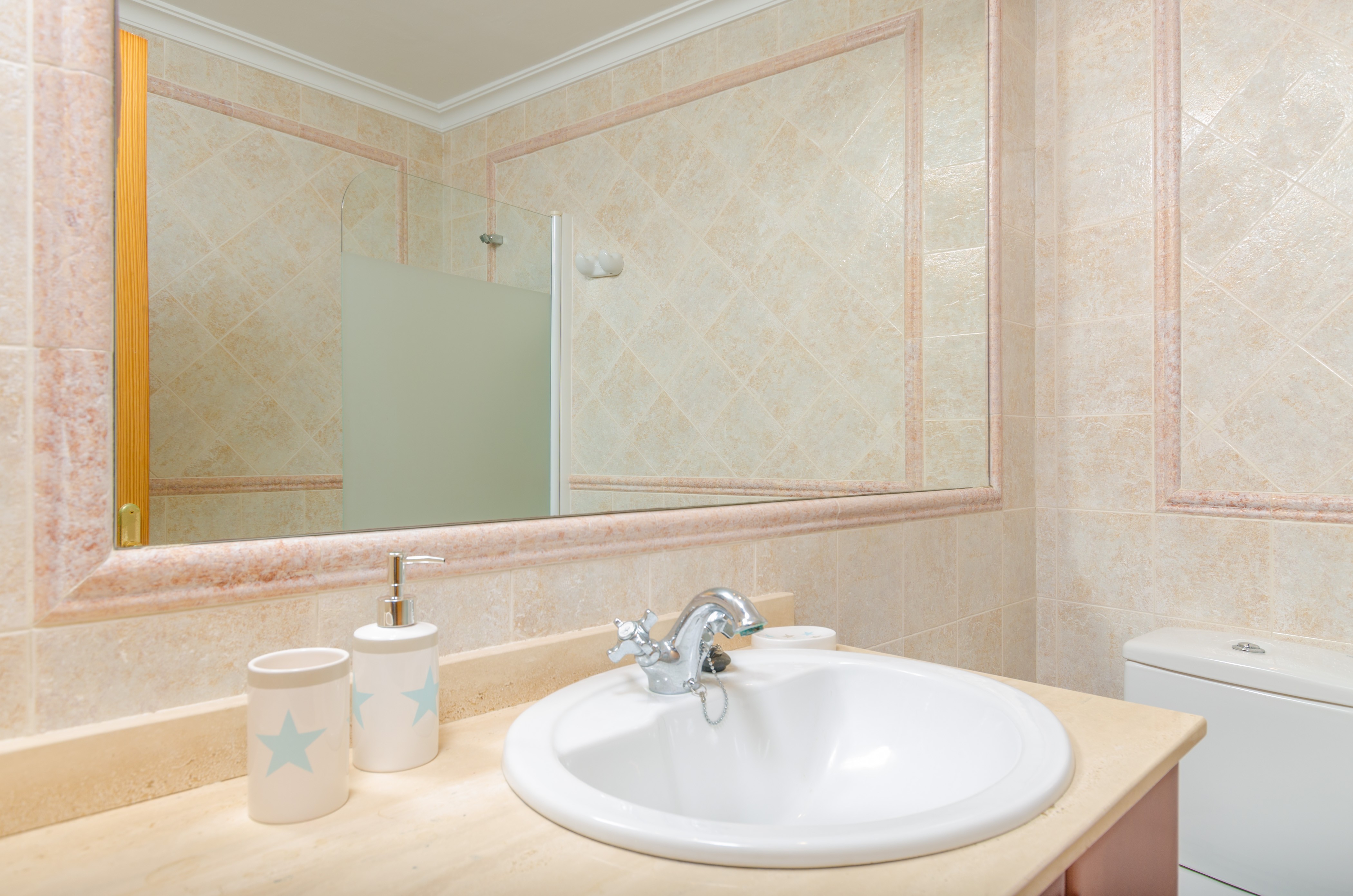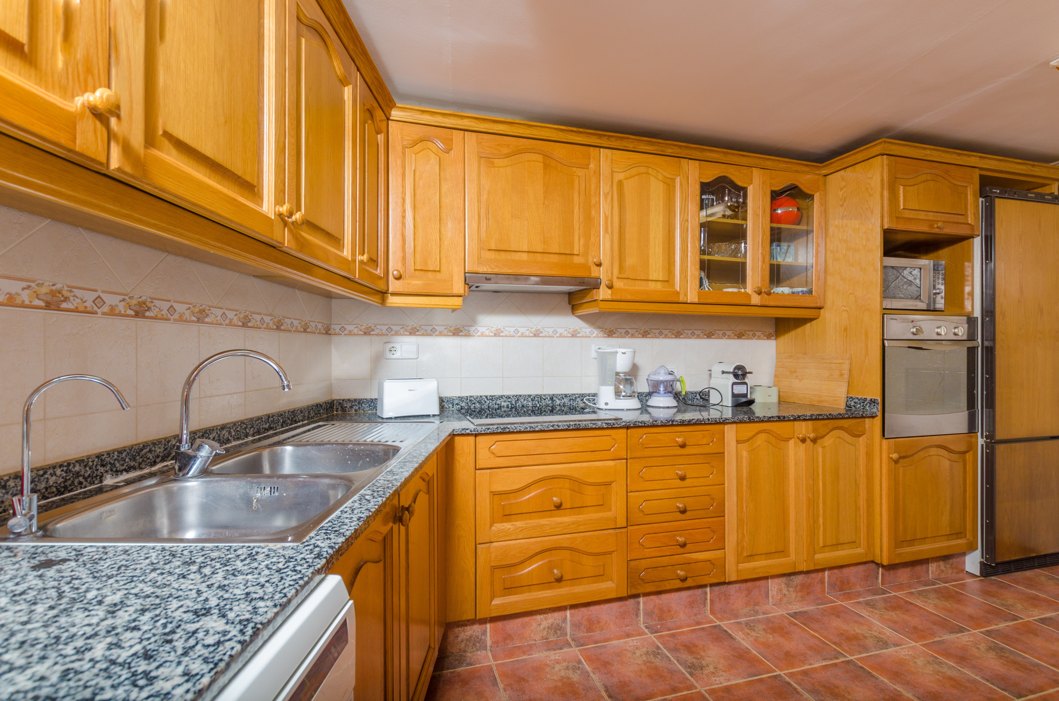Auf der zweiten Wohnebene befindet sich das vierte Schlafzimmer mit Doppelbett, Klimaanlage, Kleiderschrank, Babybett und Kinderhochstuhl. Ausserdem stehen auch eine Waschmaschine, Bügeleisen und Bügelbrett zur Verfügung.