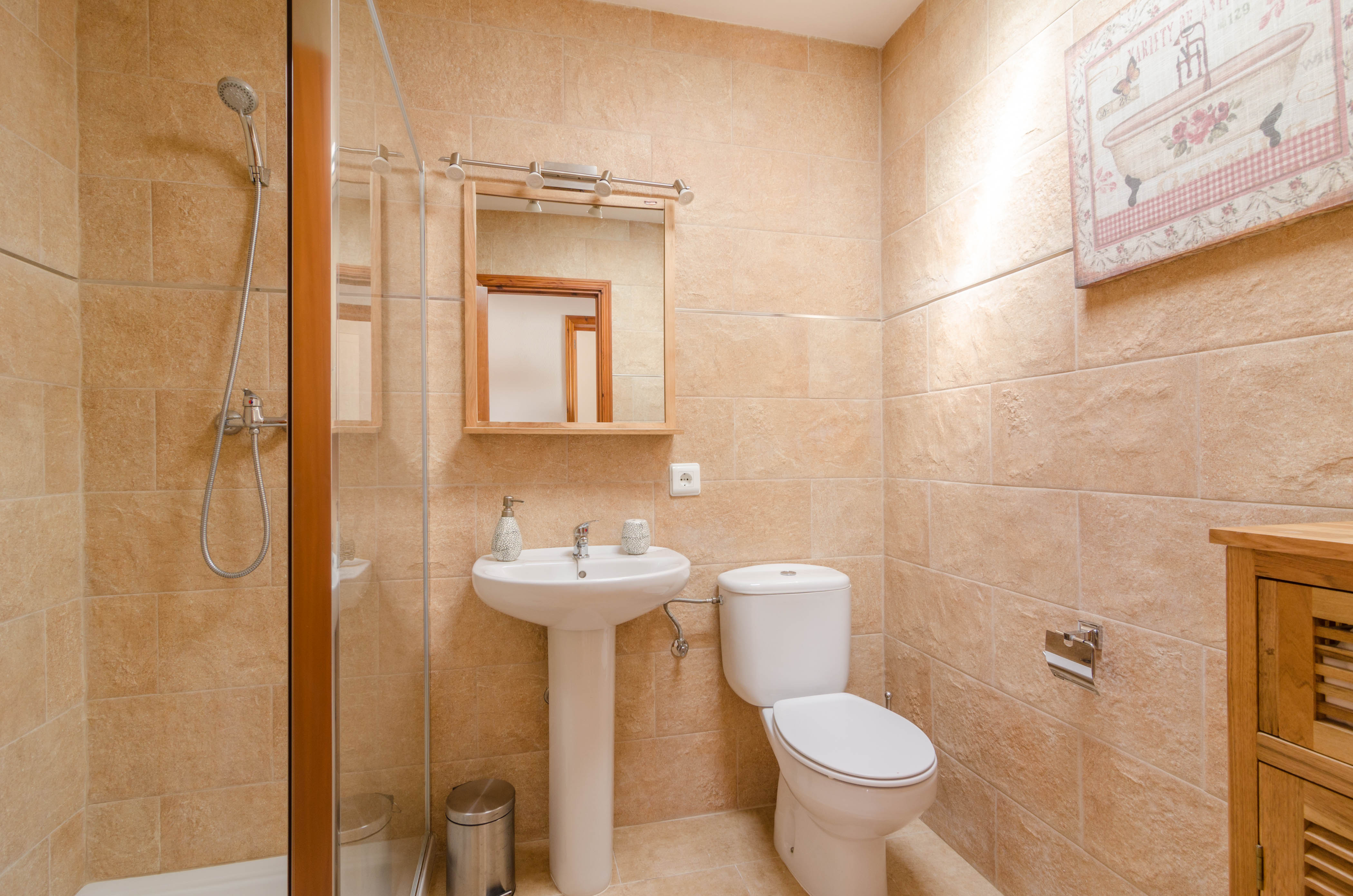 Das Chalet liegt in der ruhigen Wohngegend Cala Pi. Die Bucht liegt genau zwischen zwei Felsen und ist über eine Treppe erreichbar. Im Ortskern finden Sie einen kleinen Supermarkt, Cafés und Restaurants. Nahe Llucmajor kann man Überreste der prähistorischen Siedlung Talayot de Capocorb besuchen. Wenn Sie gerne an den Strand fahren, können Sie Es Trenc, Sa Rapita, Cala S'Almonia und Cala Mondragó besuchen - allesamt herrliche Sandstrände.