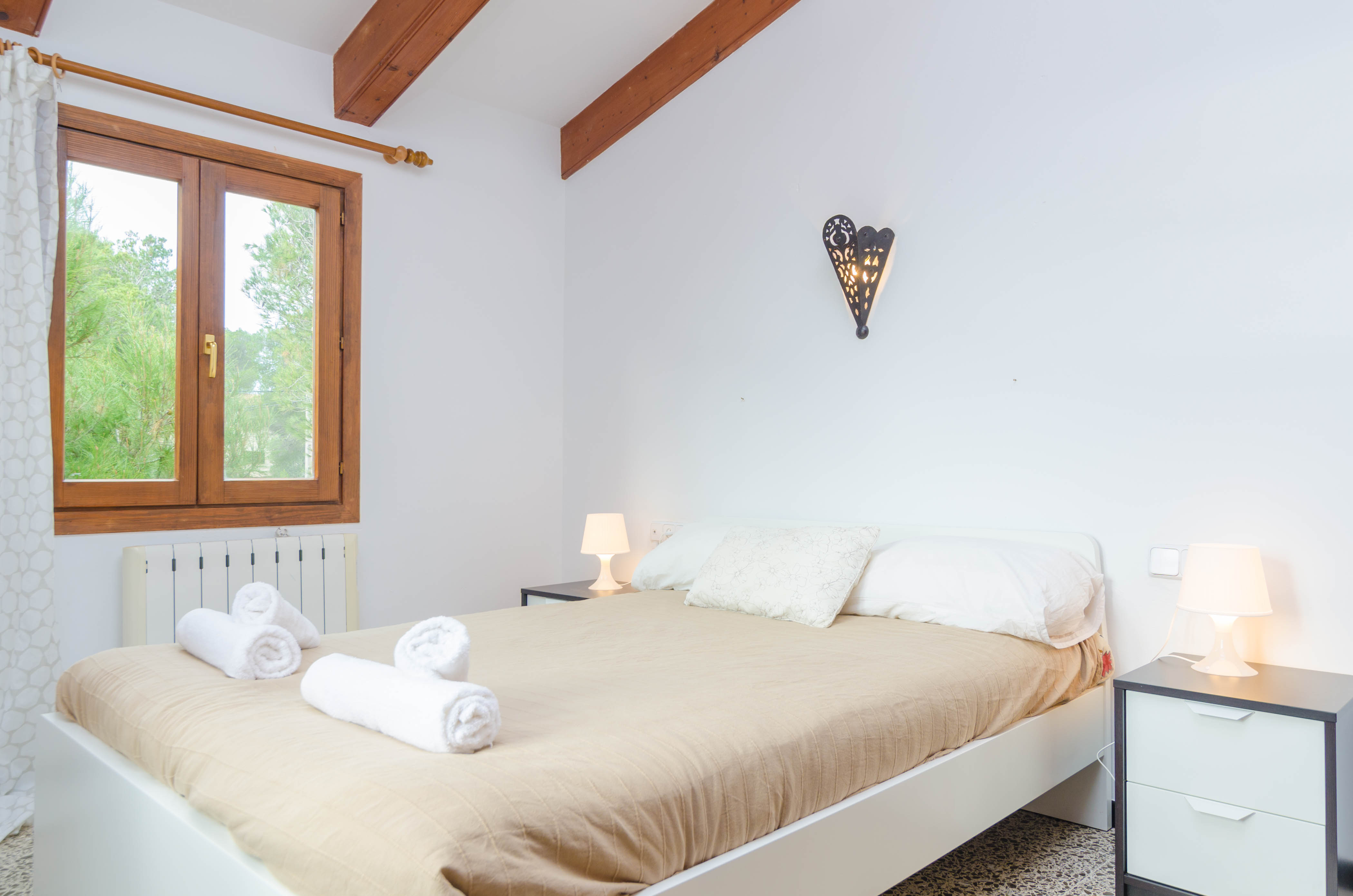 Über eine Treppe gelangen Sie in den oberen Bereich des Hauses. Hier befinden sich zwei Schlafzimmer, eines mit einem Doppelbett und das andere mit zwei Einzelbetten, sowie einem Ausgang auf eine große Terrasse und ein komplettes Badezimmer mit Badewanne. Alle Schlafzimmer verfügen über einen Einbauschrank, sowie einen Heizkörper für die kühleren Tage, falls gewünscht. Die beiden zusätzlichen Personen können auf dem verwandelbaren Sofa im Wohnbereich untergebracht werden.Auf Anfrage können wir Ihnen gerne ein Babybett, sowie einen Kinderhochstuhl zur Verfügung stellen.